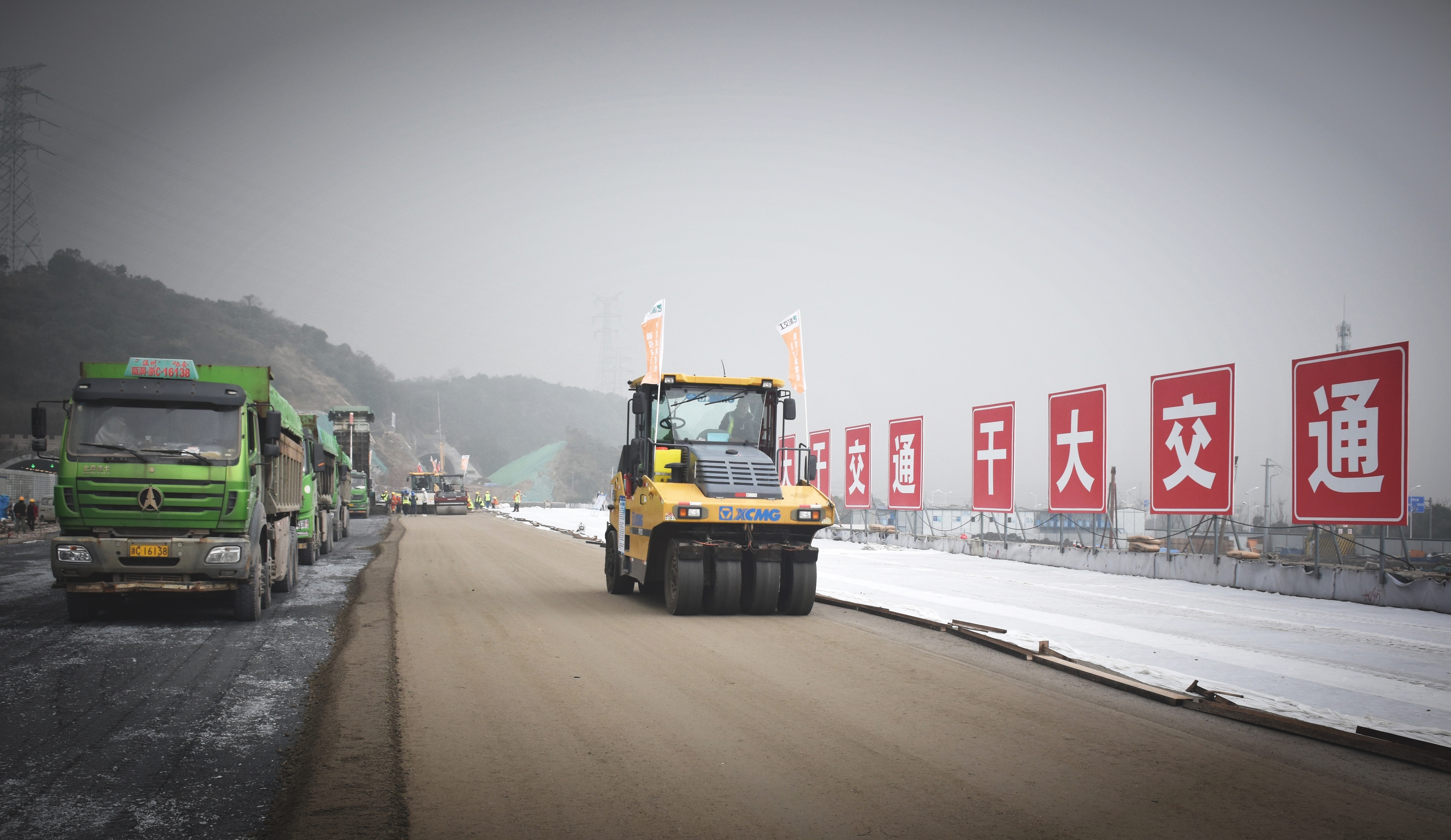 双月攻坚丨金丽温东延线项目先行通车段开始路面施工
