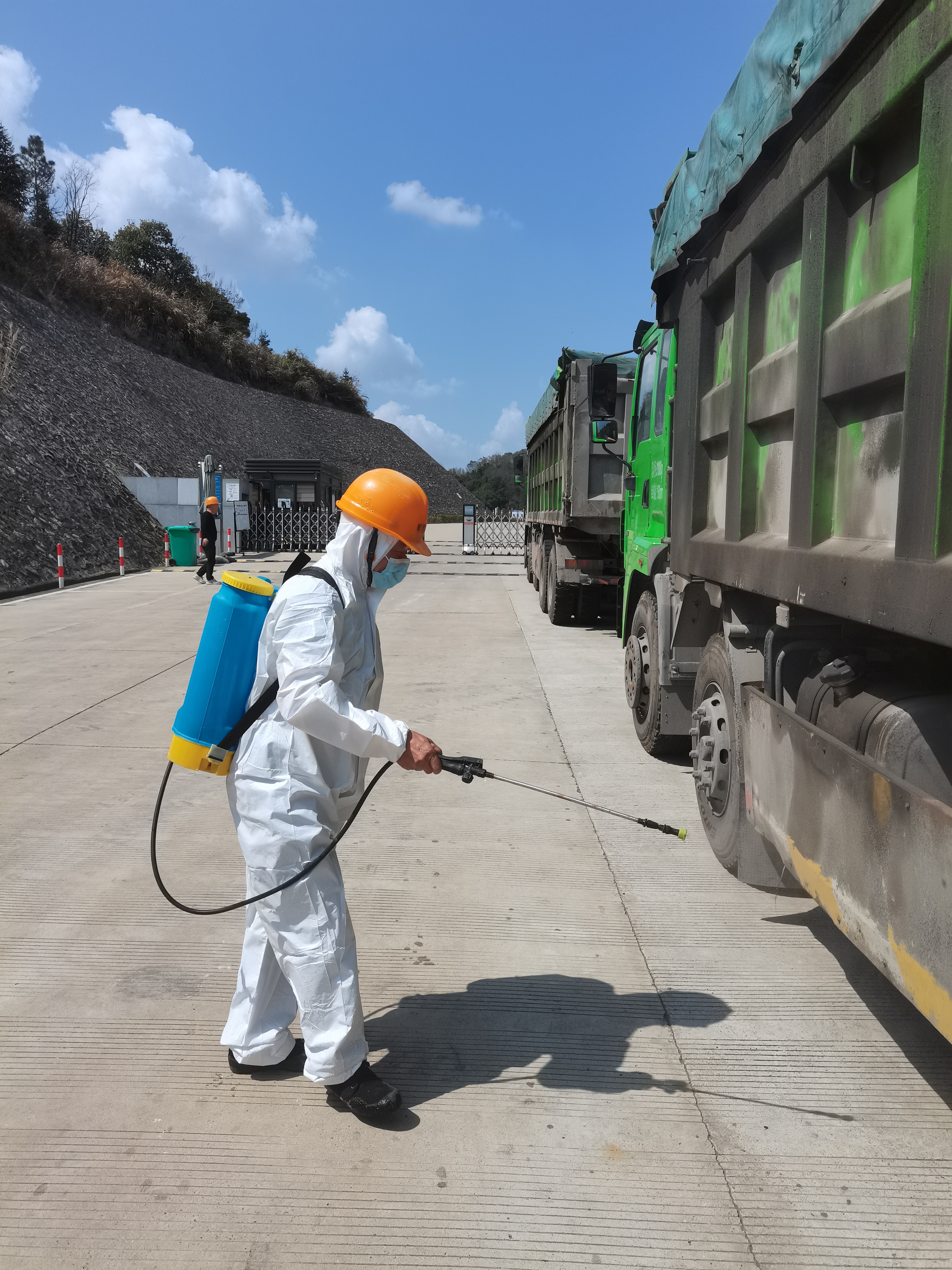 西向填埋场地处偏僻山区,在疫情管控期间,难免需要加班加点,在交通不便的情况下,现场项目经理应益胜多次主动接送员工上下山,以确保项目正常运作。同时,他积极组织监督现场工作人员严格按照相关疫情防控要求,加密消杀频次,突出人员、车辆出入跟踪管控,以保障现场环境、运输及人员安全,织密织牢疫情防线。