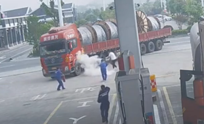 陶山服务区加油站成功处置一起大货车起火事件