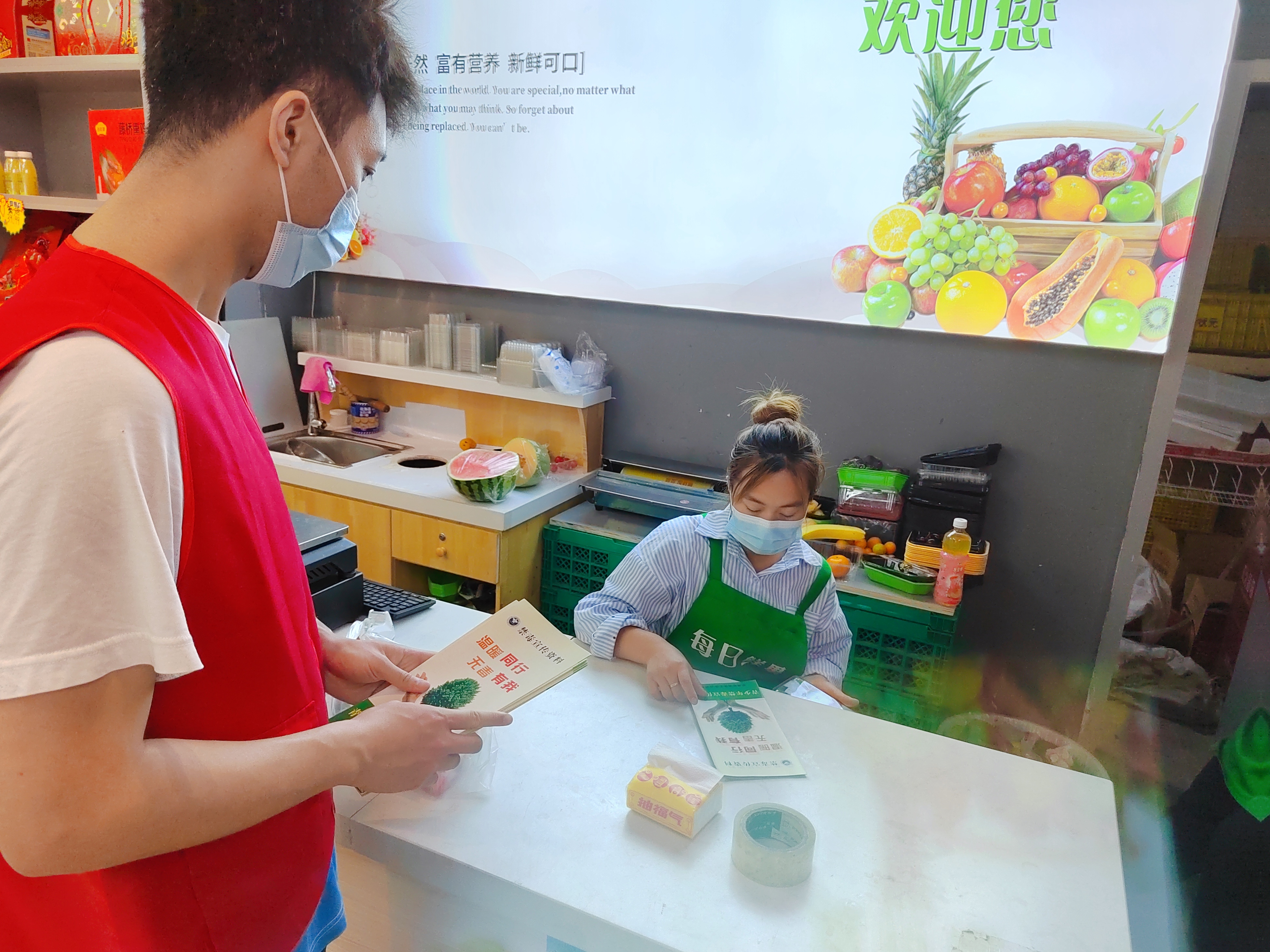 来到街道现场,志愿者们身穿红马甲,手拿文明倡议书,分工合作,向金海湖社区周边的住户、商铺、行人分发文明倡议书。随后,志愿者们开展捡烟蒂置换硫磺皂、牙膏等生活用品的活动,积极动员周边人员一起将公共座位、垃圾桶、绿化草坪、人行道等基础设施进行清理。