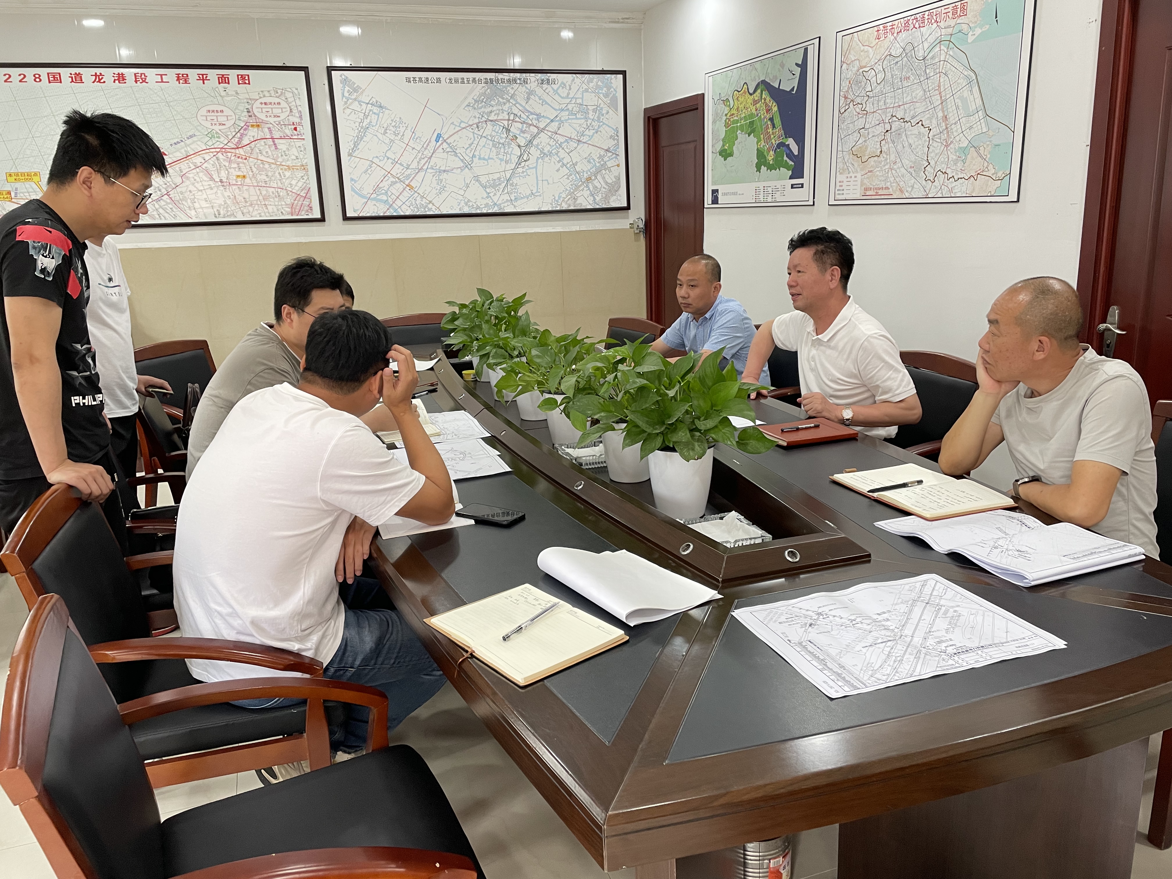 6月8日上午,沈海公司组织召开芦浦互通及接线工程管线迁改协调会,省交通设计院、温州昌盛电力公司、四大运营商、龙港指挥部等有关单位参加会议。
