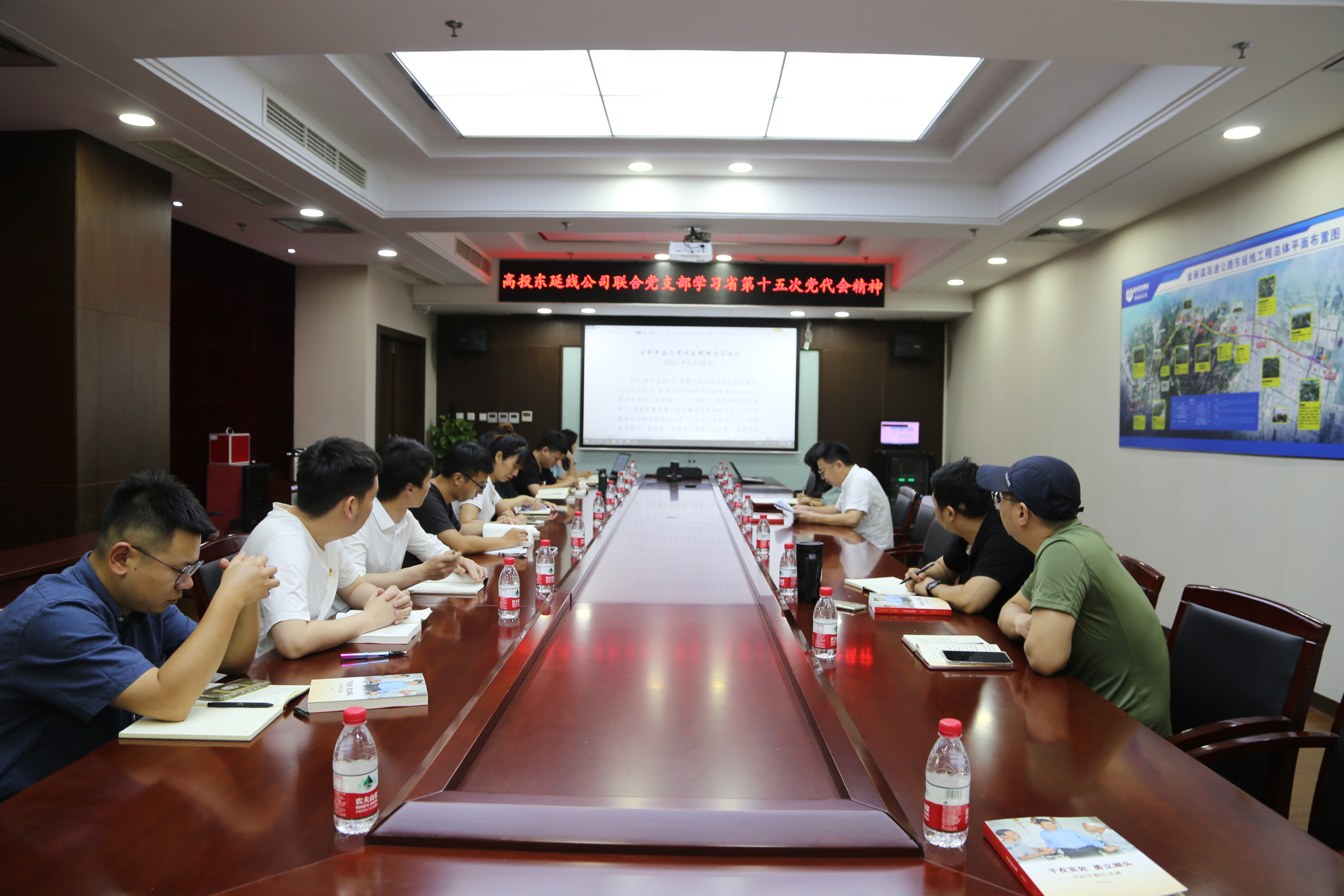 6月29日上午,高投东延线公司联合党支部专题组织学习贯彻省第十五次党代会精神,全体党员和积极分子参会。
