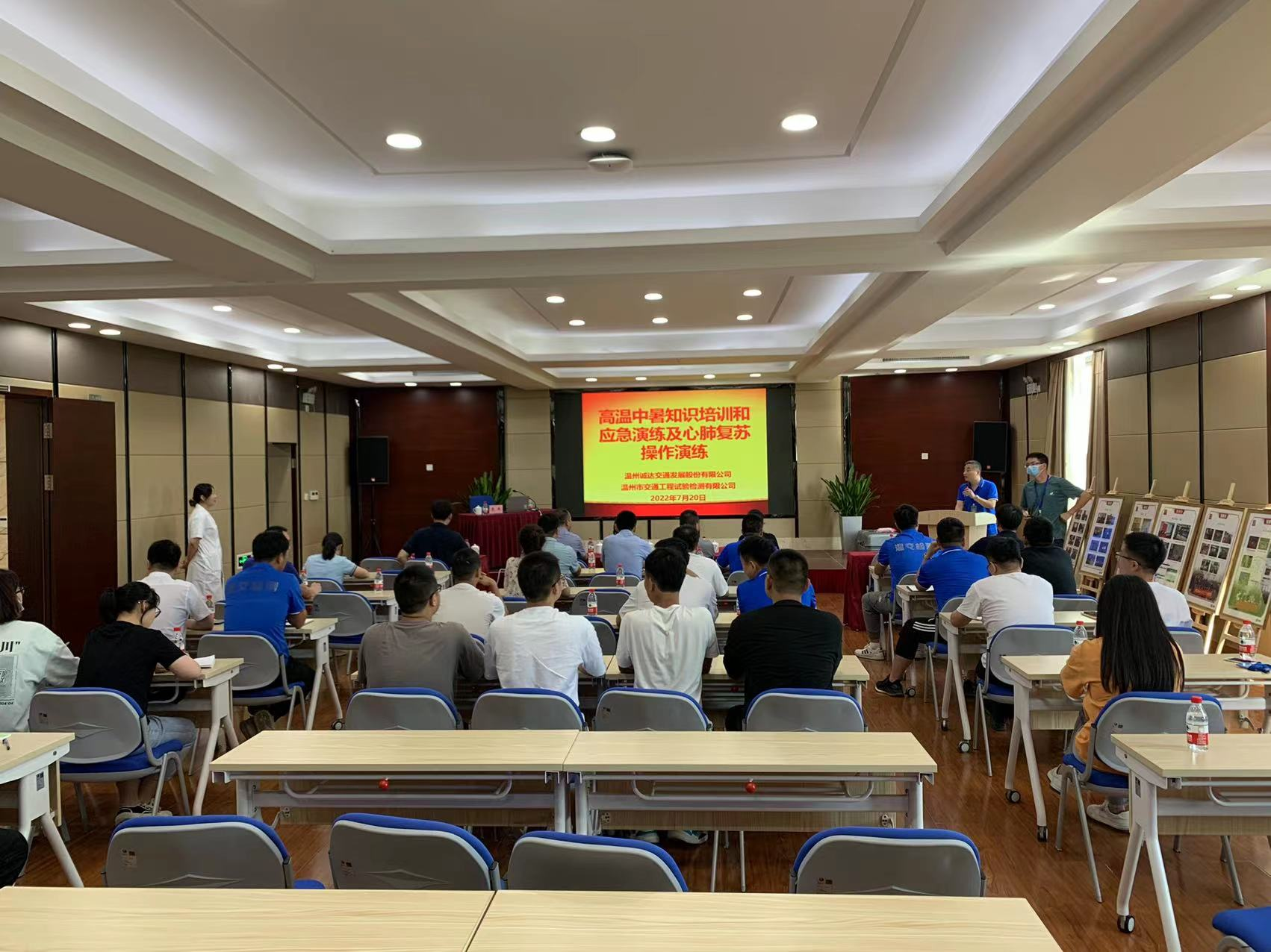 当前,正值高温酷暑时节,为进一步增强职工高温天气作业的安全意识和应急处置能力,7月20日下午,温州诚达交通发展有限公司组织高温防暑专题培训及应急演练,活动在温州交通检测公司在三楼多功能厅举行。诚达公司及下属子公司职工代表参加本次活动。