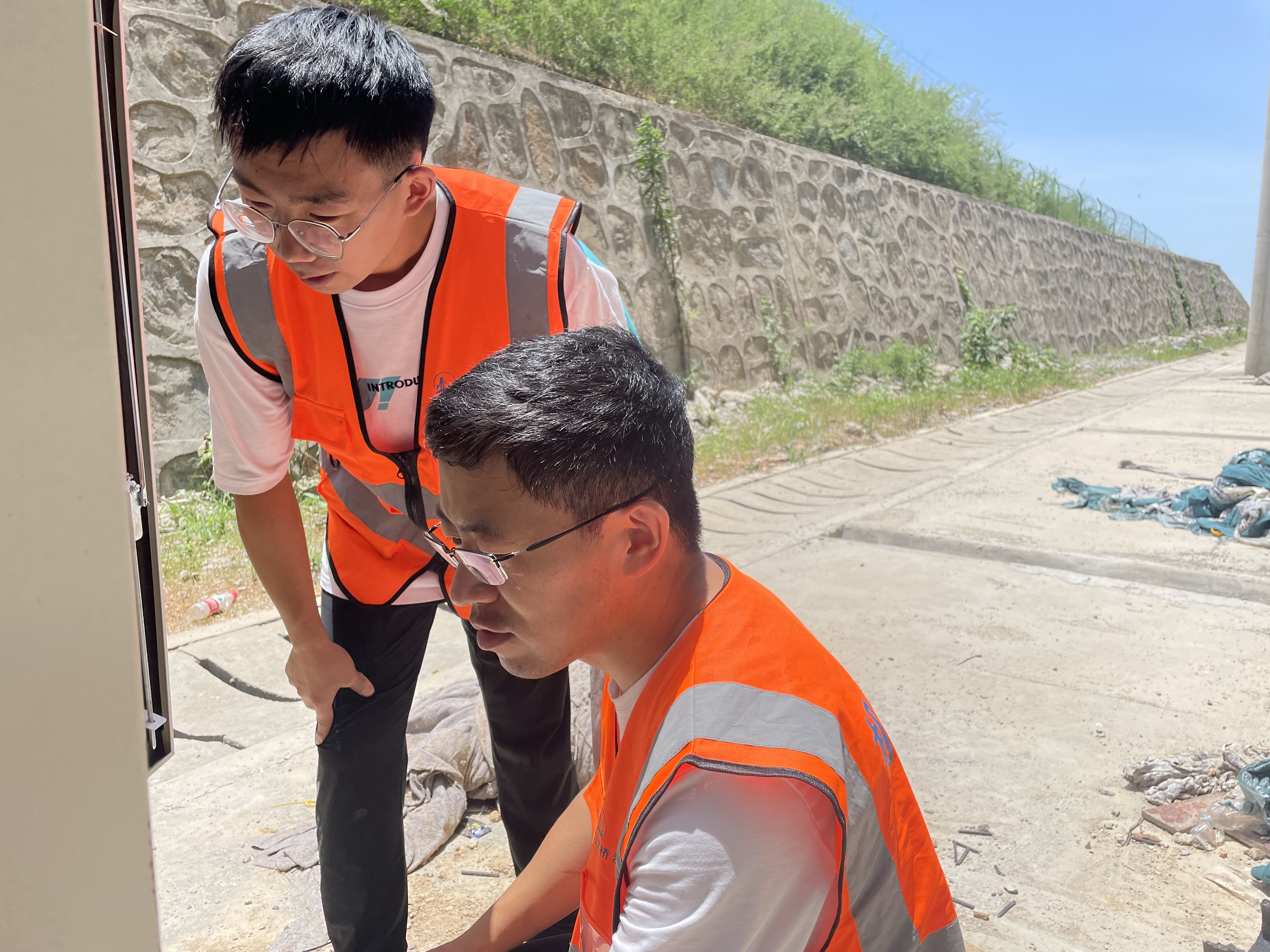 7月19日上午11时,户外温度达到38℃,工程机电人员正头顶烈日检查瓯江北口大桥机电设备。尽管脸上的汗水迷了眼,他们也是随手一擦,眼神依旧仔细观测着测量仪器的各项指标,确保各高速路段收费、监控、通信等线路正常,为所辖高速运营提供稳定设备保障。