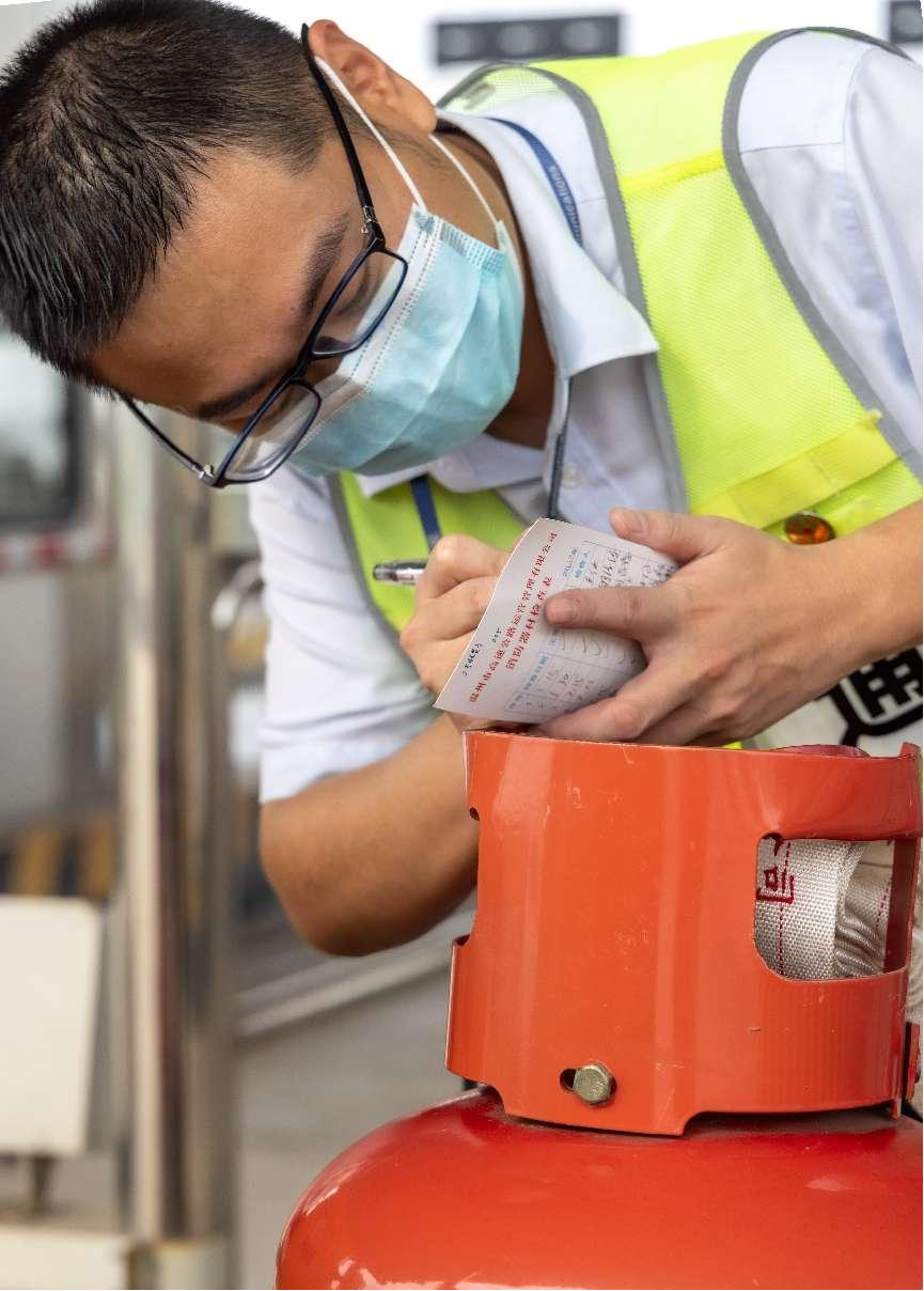 7月21日上午10时,瑞安东收费站室外温度达39℃。为确保站点消防设施安全有效,收费员正检查每条车道的灭火器。高温下车辆每次通过时都带来一股热浪,但收费员仍一丝不苟地搬动着灭火器仔细检查压力和有效期是否正常,汗水浸透的衬衫,挂满汗珠的脸庞,他用实际行动默默守护着站点的安全。