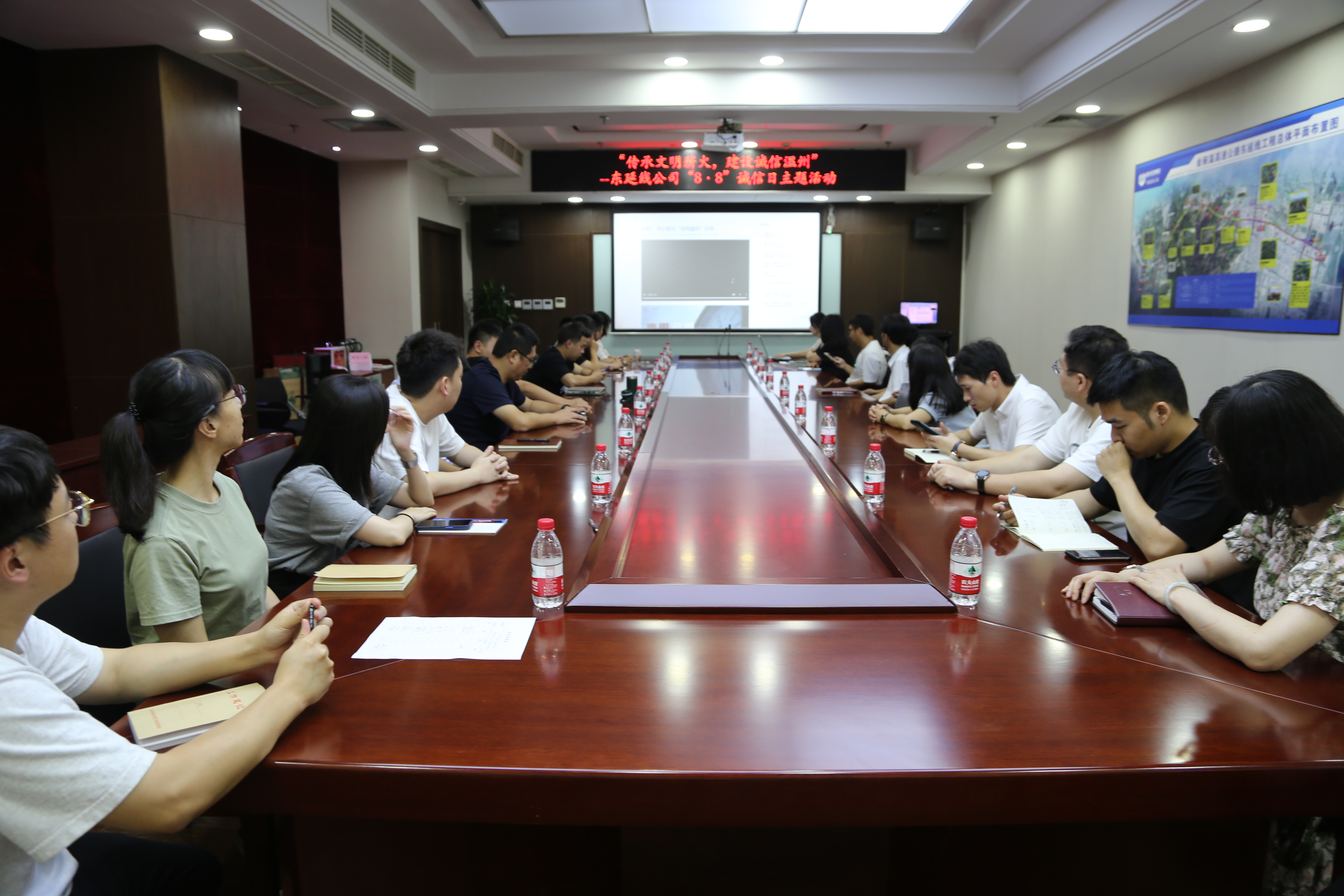 今年8月8日是温州市第二十一个“8·8诚信日”,为加强文化建设,提高诚信意识,8月8日下午,东延线公司组织开展“传承文明薪火,建设诚信温州”诚信日主题活动。