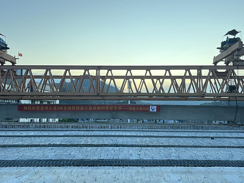 温瑞大道南段快速路一期工程第3标段主线高架全线总长约1.88公里,桥梁上部结构大部分采用预制小箱梁结构,少数采用现浇梁结构。本项目共有预制小箱梁465片,该标段涉及小箱梁数量大,角度多,包含25m小箱梁114片,30m小箱梁328片,35m小箱梁23片。自第一片小箱梁安装以来,为确保箱梁安装稳步推进,浙瓯交建科技公司积极优化施工方案、细化工作计划、以边生产边安装的方式有效提高了施工进度,合理进行资源配置,并制定了安全保障措施及应急预案,最终安全圆满完成任务目标。