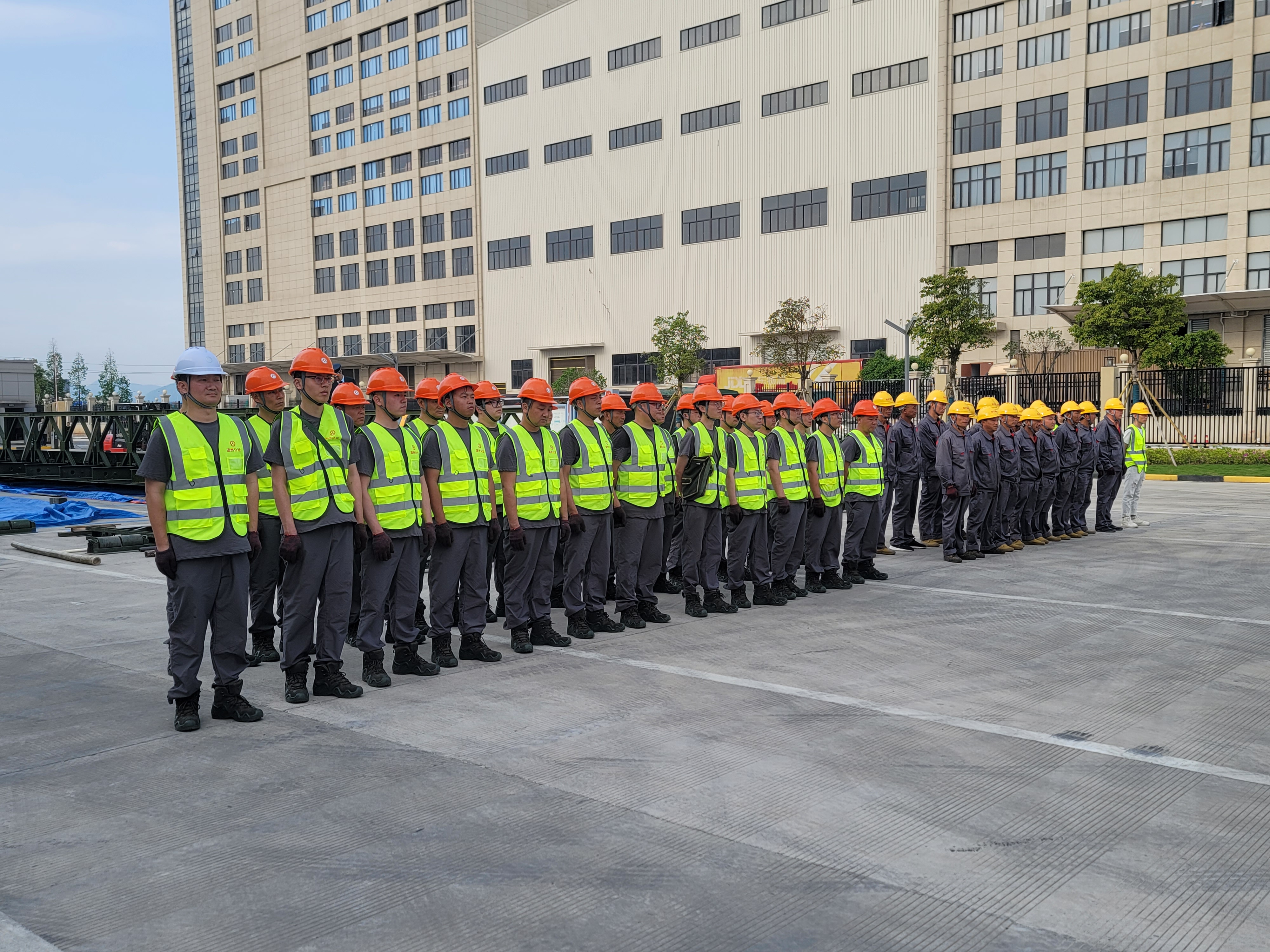 公路工程公司钢架桥应急队共29人,其中队长1人,人员实行一岗多责管理,平时主要工作分布在沥青料生产、绿化维养、道路小修、车辆驾驶等岗位,遇突发事件时,人员可随时快速集结响应,做到召之即来,来之能战,战之能胜。本次演练也是对公司钢架桥应急队的一次实战性检验。