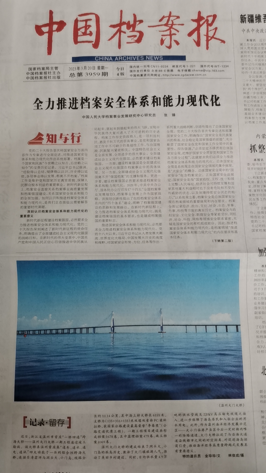 大门大桥照片获《中国档案报》刊发