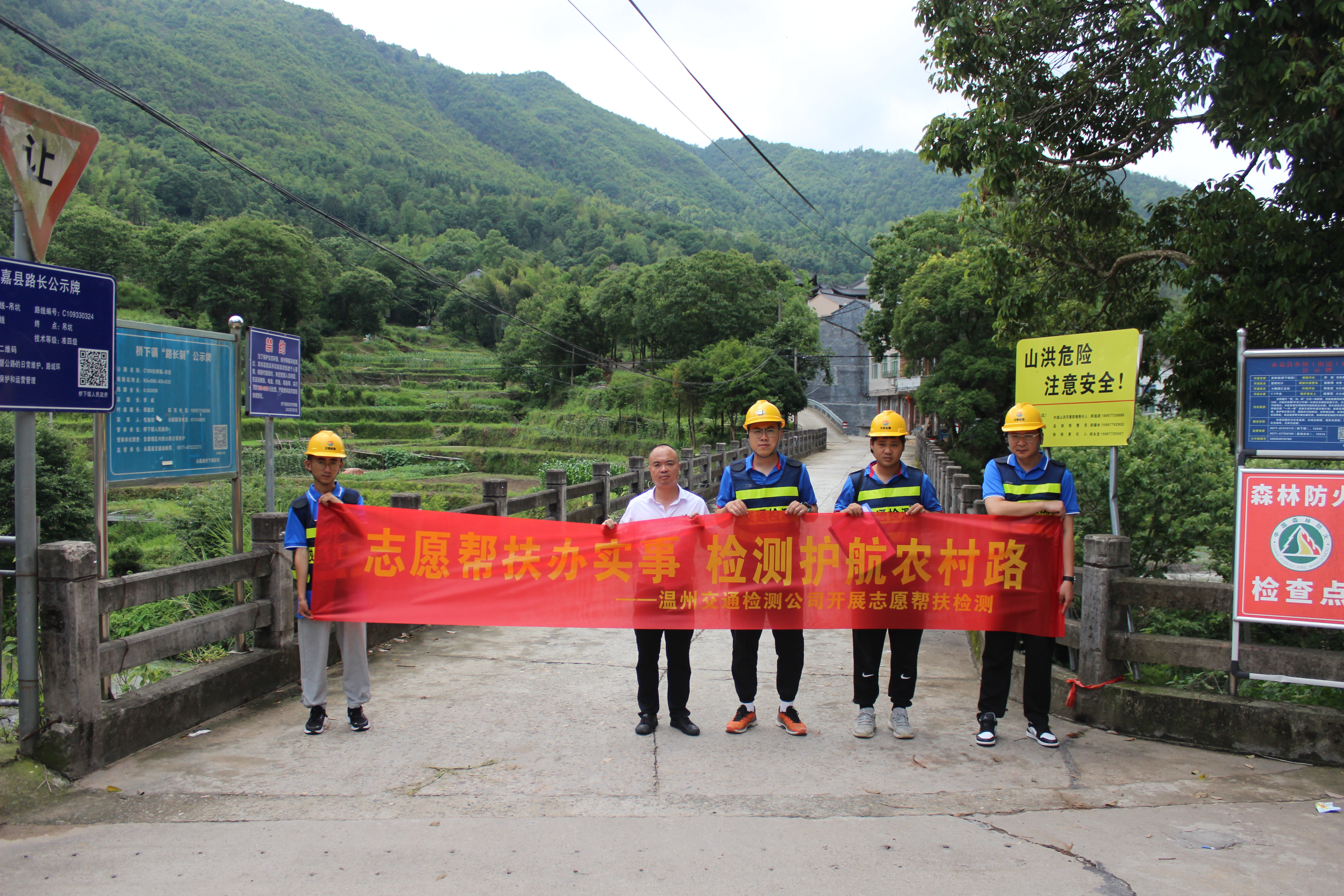 温交检测公司已经连续两年为该镇农村公路桥梁进行义务检测,为当地村民的安全出行提供了有力保障,以实际行动彰显国企担当。今后,温 交检测公司将持续以党建为引领,在志愿公益、乡村振兴等方面主动担当作为,以实际行动践行社会责任,共同为乡村振兴发展贡献力量。