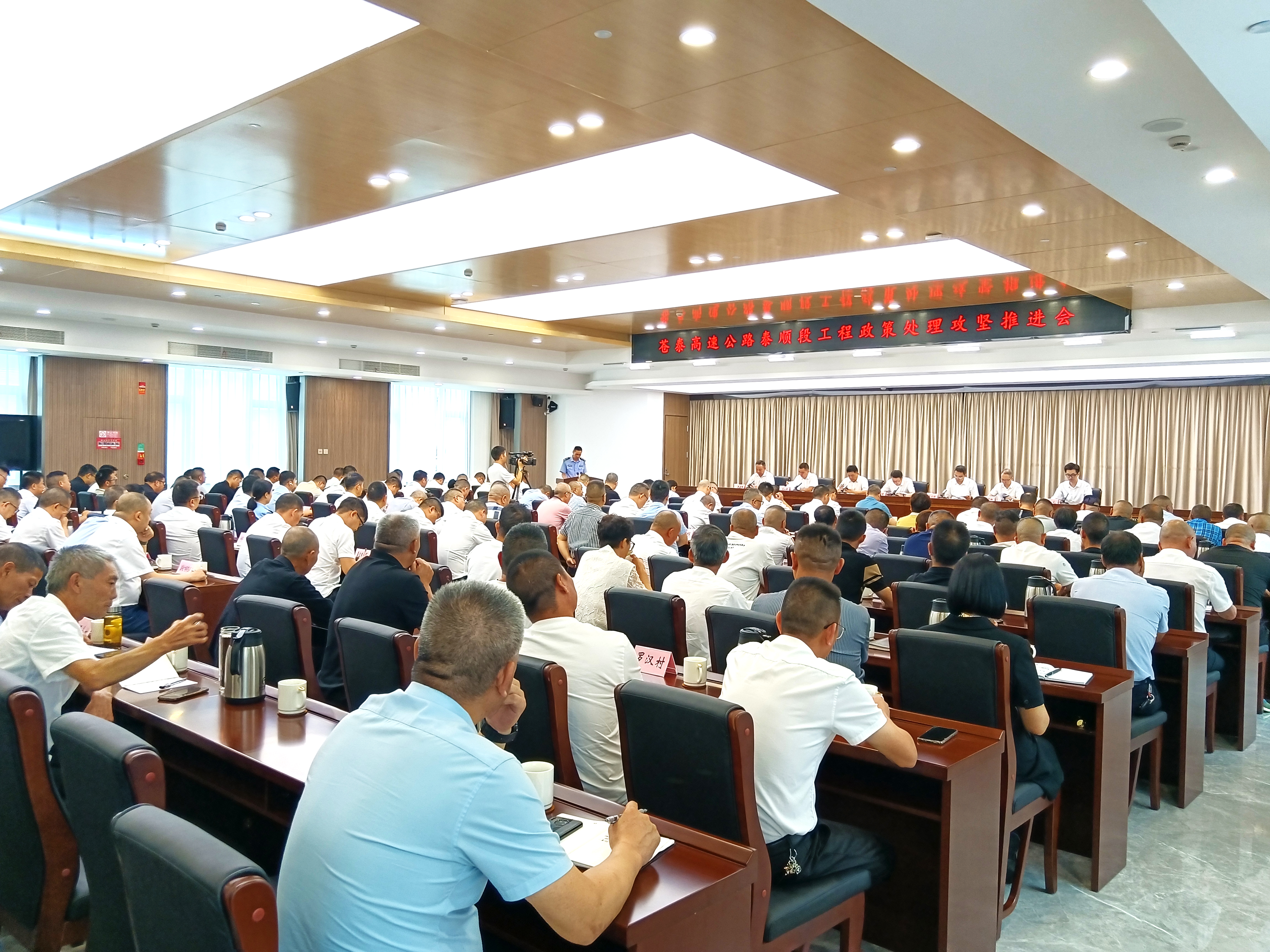 9月5日,苍泰高速公路泰顺段召开工程政策处理攻坚推进会,泰顺县委书记丁熠锋、泰顺县委副书记、县长李剑锋、泰顺县委常委、副县长赖立峰等领导班子出席会议,县高速公路指挥部、沿线各乡镇负责人、县各职能部门负责人、沿线村书记及苍泰公司代表等180人参加会议。