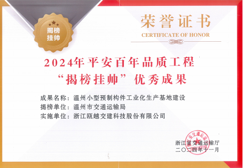 瓯越交建公司“小型预制构件示范基地”上榜浙江交通平安百年品质工程“揭榜挂帅”优秀成果