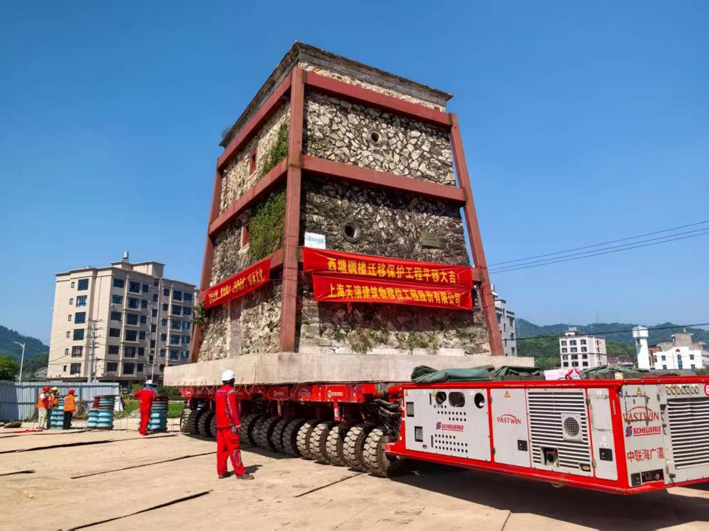 具有近百年历史的西塘碉楼原址处于甬台温高速改扩建工程的关键线位,自重超过350吨,为兼顾工程推进和历史建筑保护,项目团队联合专业机构开展技术论证,科学制定整体迁移方案,迁移全过程采用高精度数字化监控和SPMT拖车作业,切实保障了迁移过程的平稳与建筑结构的安全。西塘碉楼承载着独特的地方记忆,其迁移完成后,将在新址获得永久性保护和修缮,并继续作为甬台温高速沿线的一处文化地标,见证区域的发展变化。