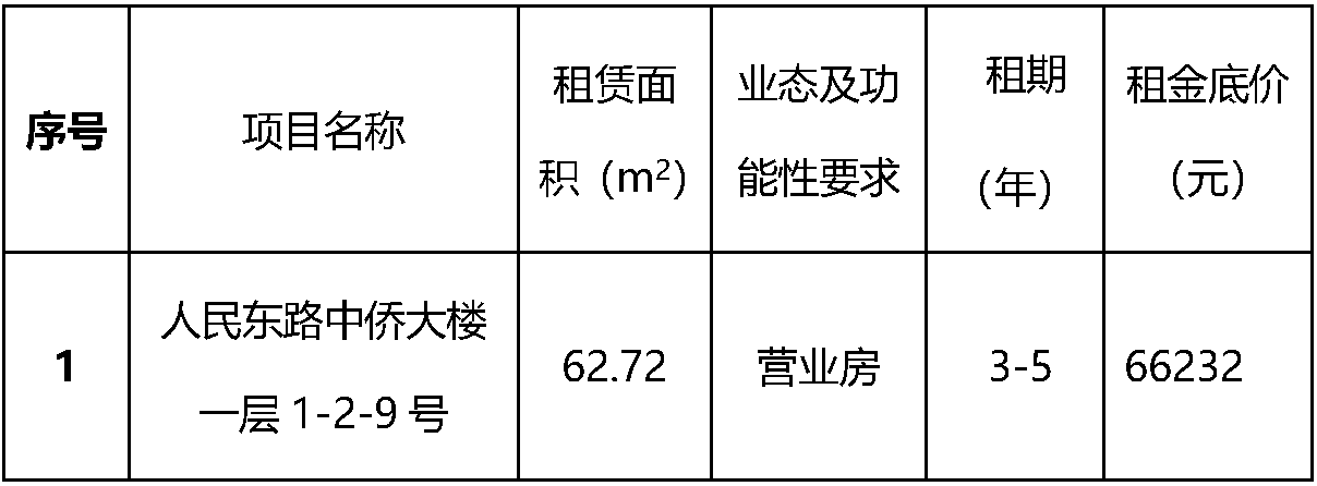根据伟德国际victor1946《温州市交通投资集团有限公司国有资产租赁管理办法》(温交投[2019]168号)规定,温州市交通发展集团有限公司下属温州房地产开发股份有限公司就所属鹿城区人民东路中侨大楼一层1-2-9号资产经公司会议研究决定,以公开招租方式进行租赁,欢迎合格的意向承租人来竞标。