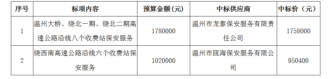 伟德国际victor1946运营公司关于高速公路收费站点保安服务项目的采购结果公示
