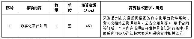 温州市交通发展集团有限公司关于数字化平台项目的采购公告