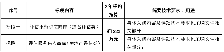 六、采购内容:评估服务供应商库分为两个标段(具体采购内容及详细技术要求见采购文件相关部分):