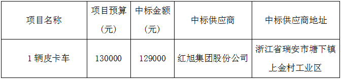 伟德国际victor1946所属温州星河物业管理有限公司关于1辆皮卡车采购项目(自主)的采购结果公示