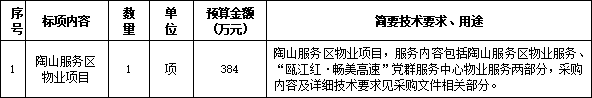 二、项目名称:陶山服务区物业项目