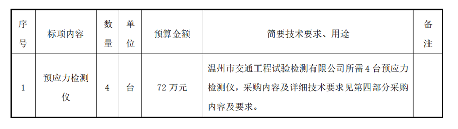 伟德国际victor1946所属温州市交通工程试验检测有限公司关于4台预应力检测仪项目(自主)的征求意见公示