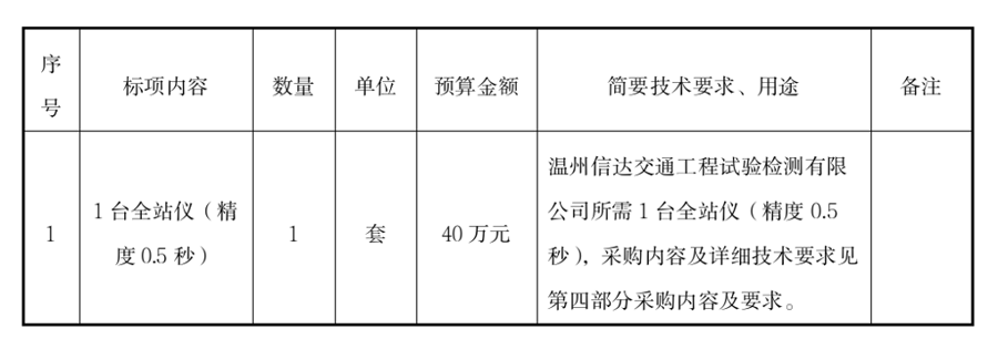 伟德国际victor1946所属温州信达交通工程试验检测有限公司关于1台全站仪(精度0.5秒)项目(自主)的采购公告及征求意见公示