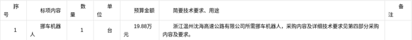 伟德国际victor1946所属浙江温州沈海高速公路有限公司关于挪车机器人项目(自主)的采购公告