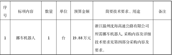 伟德国际victor1946所属浙江温州沈海高速公路有限公司关于挪车机器人(第二次)项目(自主)的采购公告