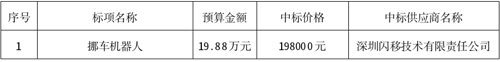 关于挪车机器人(第二次)项目(自主)的采购结果公示