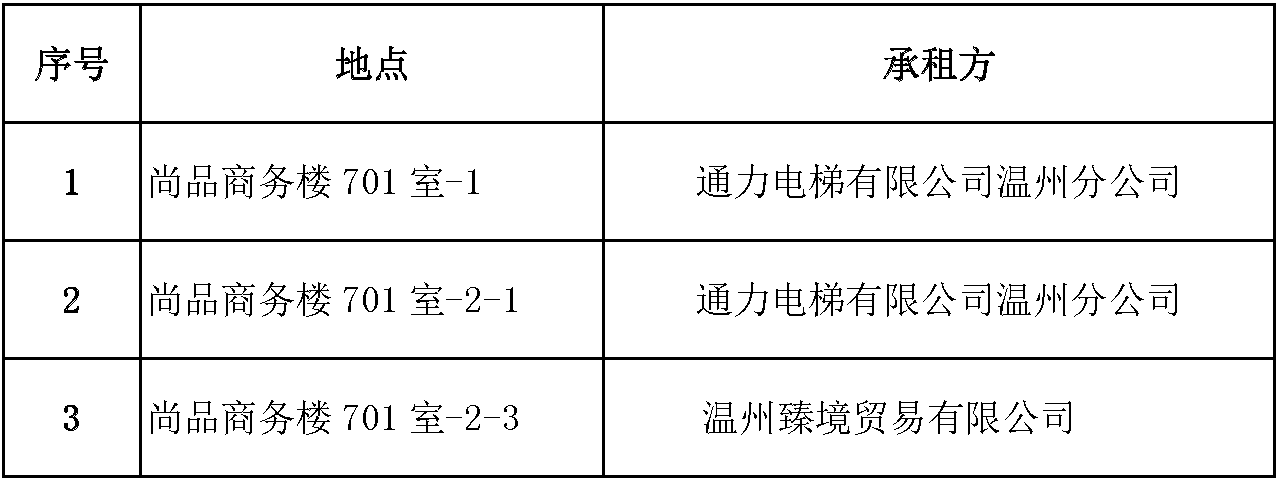 温州市交通发展集团有限公司下属温州房地产开发股份有限公司就所属尚品商务楼、星河大楼的5资产项目于2021年3月23日发布招租公告,现将招租结果公示如下: