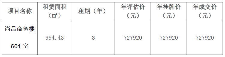 温州市房地产开发股份有限公司就温州市鹿城区车站大道669号尚品商务楼601室资产于2021年11月19日发布租赁权拍卖公告,现将招租结果公示如下: