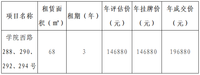 伟德国际victor1946关于学院西路288、290、292、294号资产出租结果公示
