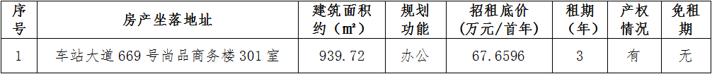 伟德国际victor1946温州房地产开发股份有限公司温州市鹿城区车站大道669号尚品商务楼301室办公用房三年租赁权(第三次)交易公告
