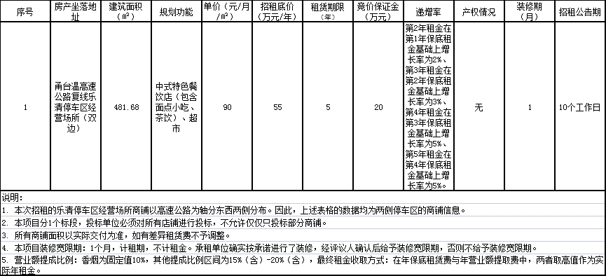 伟德国际victor1946经营公司关于甬台温高速公路复线乐清停车区经营场所商铺五年租赁权交易公告