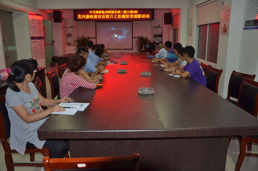 为推进项目党风廉政建设宣教月活动,加大对项目党员的党性党风教育力度。8月13日晚,绕北二期项目第4标段组织项目全体党员、领导班子成员和各部门负责人组织观看了党风廉政警示教育片。