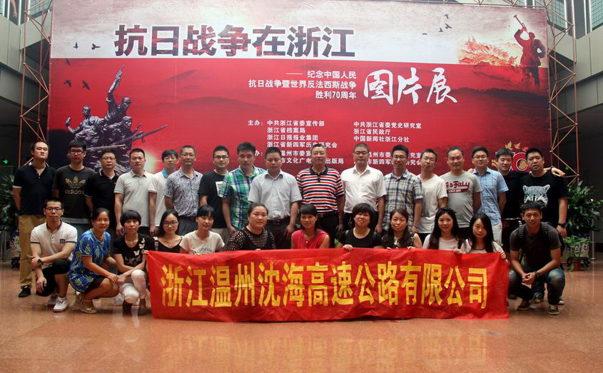 为纪念中国人民抗日战争暨世界反法西斯战争胜利70周年,弘扬以爱国主义为核心的民族精神,9月2日下午,沈海公司组织全体党员及入党积极分子、工青妇干部、公司中层以上干部、公司本部全体员工等,前往温州市文化馆观看“抗日战争在浙江——纪念中国人民抗日战争暨世界反法西斯战争胜利70周年”图片展。