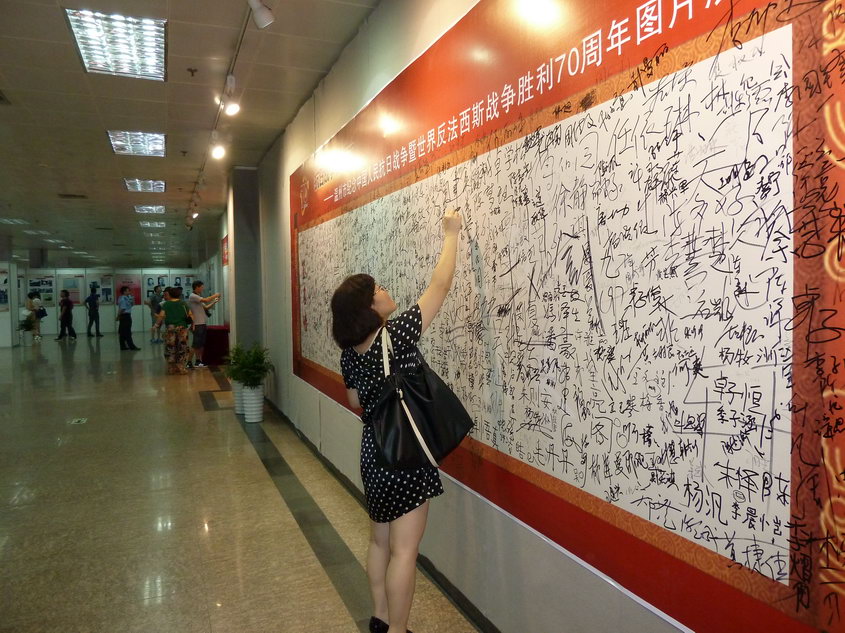 战争能带来的永远只有不幸。参观完画展后,众人纷纷在反战签名板上签下了自己的名字,希望世界人民铭记历史,让和平的橄榄树在世界各地都枝繁叶茂。