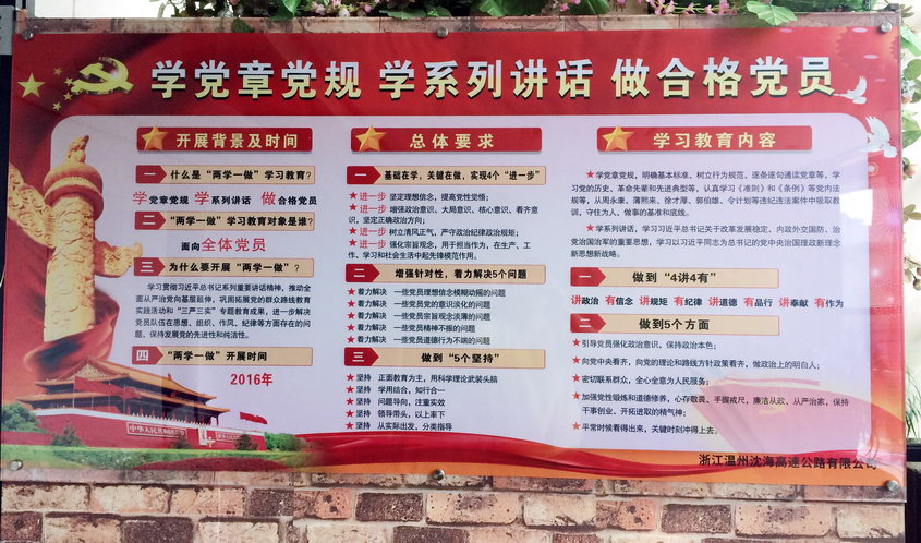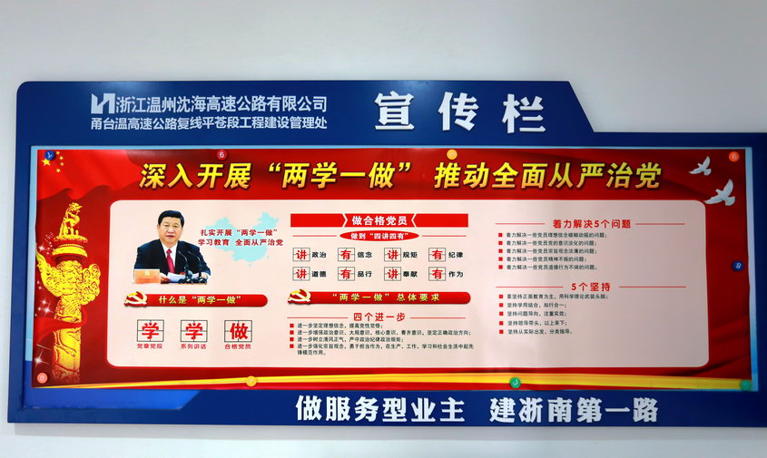 自4月份“两学一做”活动开展以来,为深入贯彻落实上级党委的总体部署,引导广大职工树立争先创优、争树标杆的意识,确保活动取得实效,沈海公司多措并举,联动甬台温高速公路复线和绕北二期全线共35家施工、监理等参建单位,以扎实的工作作风,全面推进“学党章党规,学系列讲话,做合格党员”为主题的“两学一做”学习教育活动,初步取得了成效。