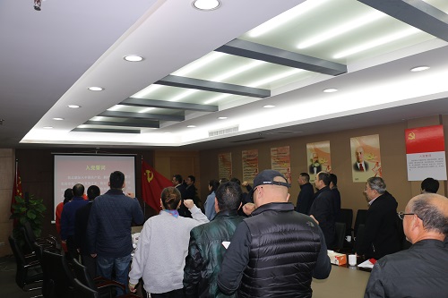 王道川为公司班子成员和各支部委员颁发了十九大学习辅导教材,并就如何深入贯彻学习十九大精神做了专题辅导。王道川强调:“思想产生信仰,信仰产生力量!”全体党员干部要切实把思想和行动统一到党的十九大精神上来。深刻领会十九大精神的主脉,清晰认识党的十九大提出的今后一个时期的奋斗目标及时间节点,深入理解十九大对“房子是用来住的、不是用来炒的”的总体定位,认真谋划公司发展方向。王道川还带领全体党员面对党旗再次庄严宣誓,重温入党誓词!