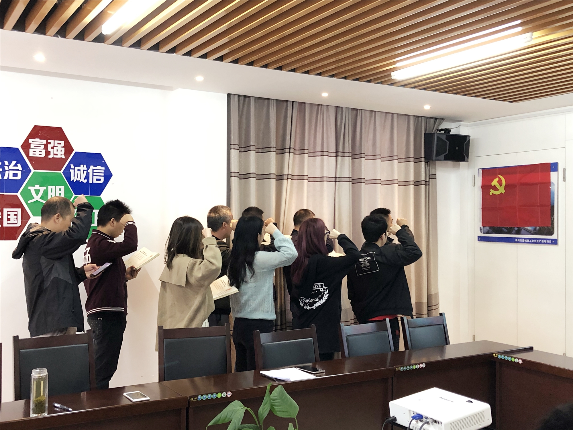 会上,全体党员重温了入党誓词。会议传达了习近平总书记在庆祝中华人民共和国成立70周年大会上的讲话及市委书记陈伟俊在温州市“不忘初心、牢记使命”主题教育专题党课上的讲话精神。根据要求,组织观看《不忘初心学党章》系列微党课。接着,公司开展了家风家训教育,共同学习《曾国藩家书》精选,借着本次主题党日的时机,推动良好家风走进更多家庭,助推集团创建全国文明单位。然后,进行了“我为祖国诗一首”爱国主义教育诗朗诵活动,与会人员以小组或个人为单位,为祖国深情朗诵诗歌。
