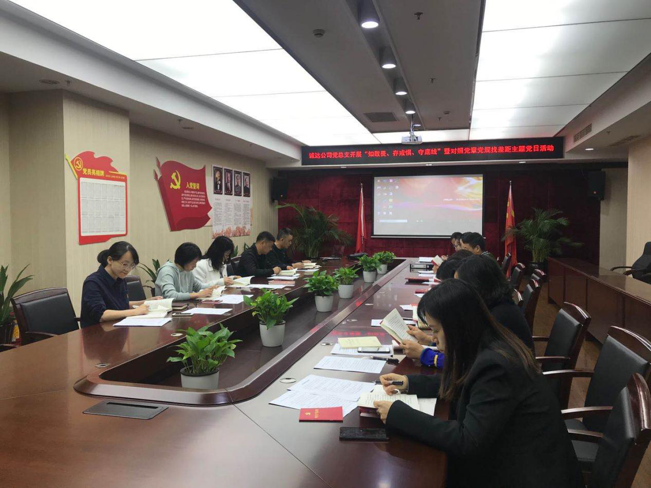 根据集团党委关于“不忘初心、牢记使命”主题教育的部署安排,11月12日下午,诚达公司党总支组织全体党员开展“知敬畏、存戒惧、守底线”暨对照党章党规找差距主题党日活动。