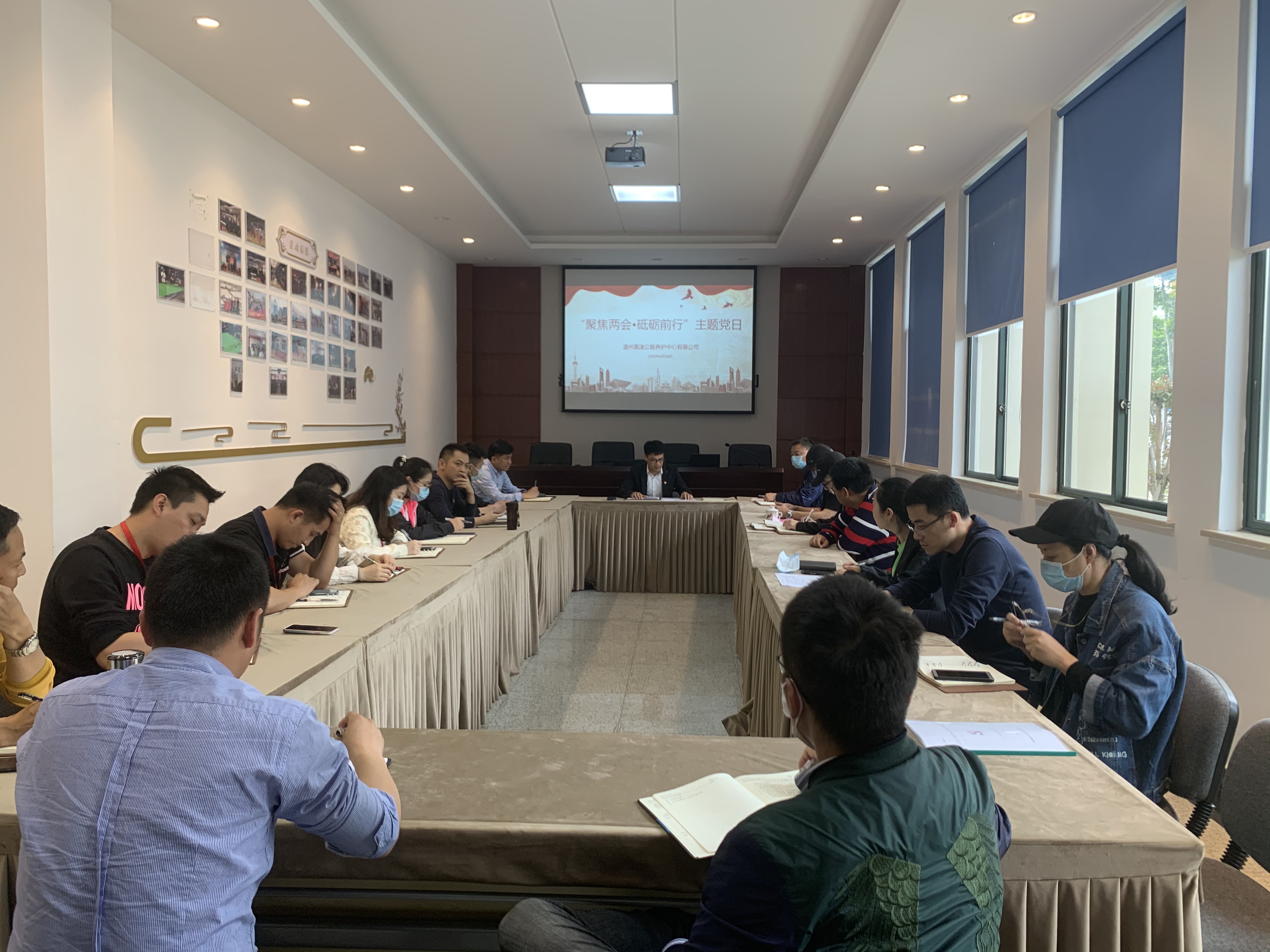 4月30日下午,在养护中心一楼会议室召开“聚焦两会·砥砺前行”主题党日,会议由书记胡永杰主持,全体党员参加。