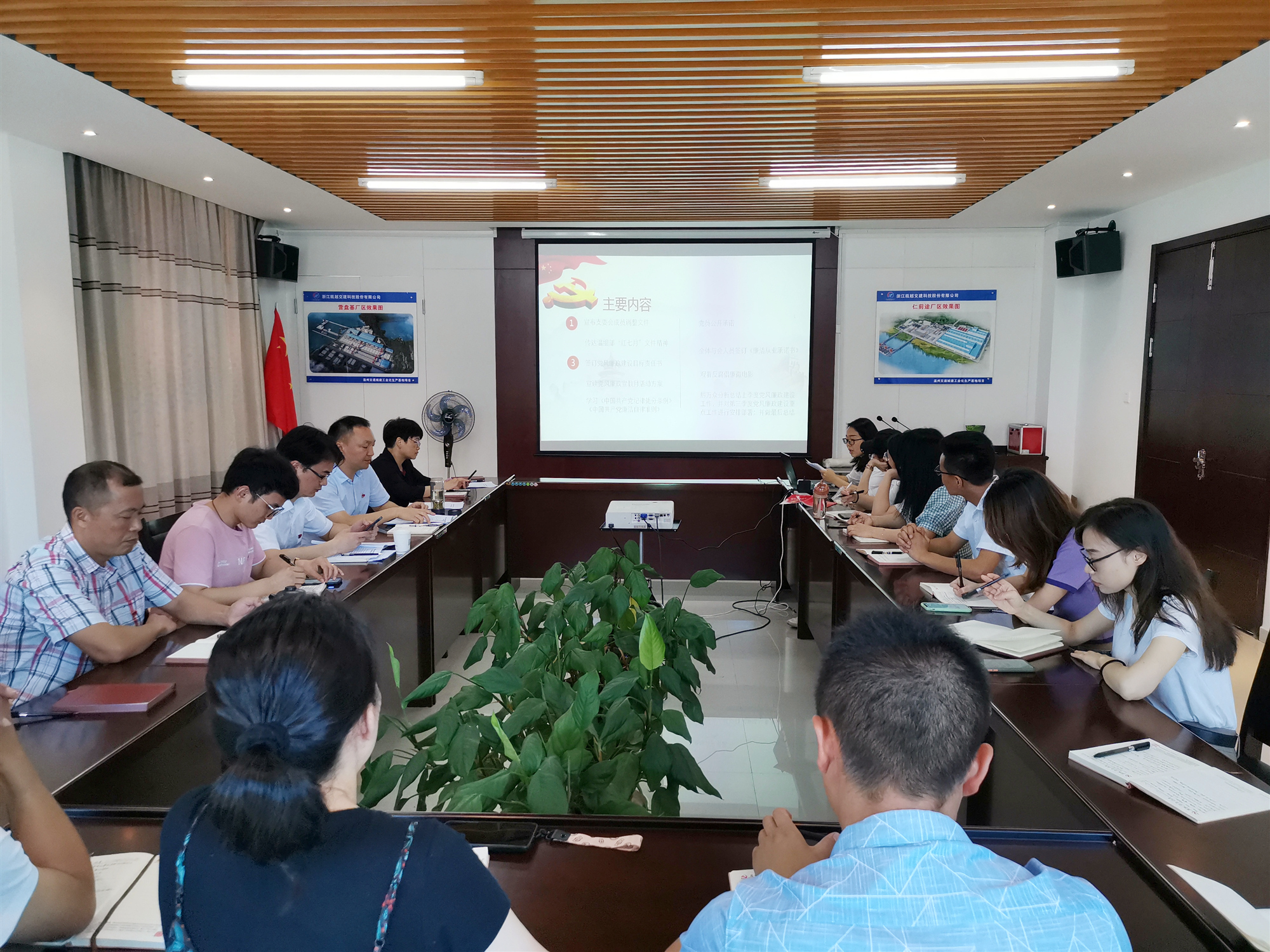 为深入贯彻全面从严治党要求,提高广大党员干部职工廉洁自律意识,筑牢拒腐防变思想防线,6月17日上午,浙瓯交建科技公司党支部组织开展“持续抓好党风廉政建设•着力推进全面从严治党”主题党日活动,会议由党支部书记厉万众主持,公司全体党员、预备党员、入党积极分子等20余人参加。