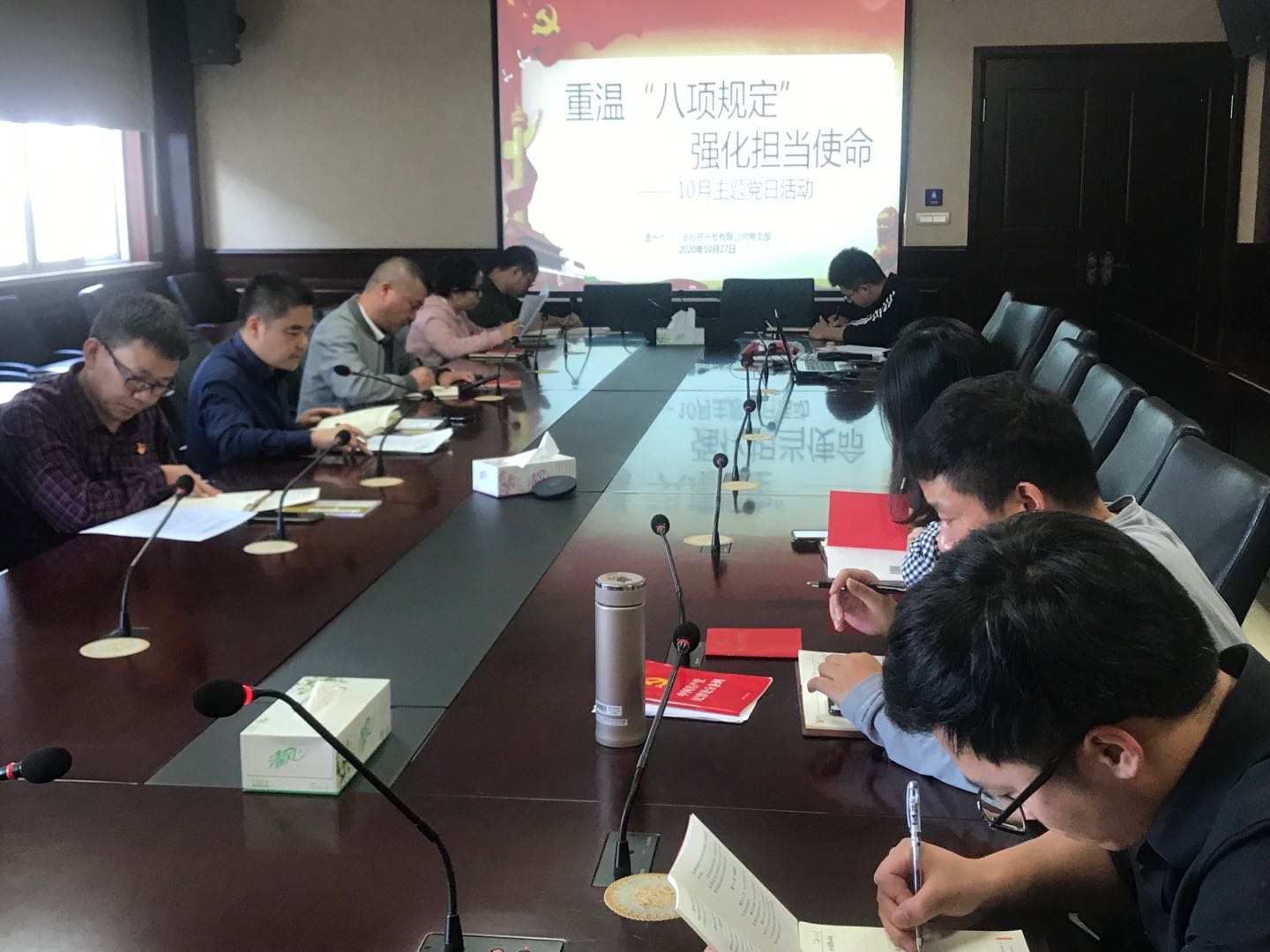 为深入推动中央八项规定精神的贯彻落实,深入推进作风建设,引导教育党员,严守纪律,自觉加强作风建设。10月27日下午,大小门岛公司党支部开展“重温‘八项规定’强化担当使命”10月主题党日活动。会议由书记覃毅宝主持,全体党员、积极分子、预备党员参加。