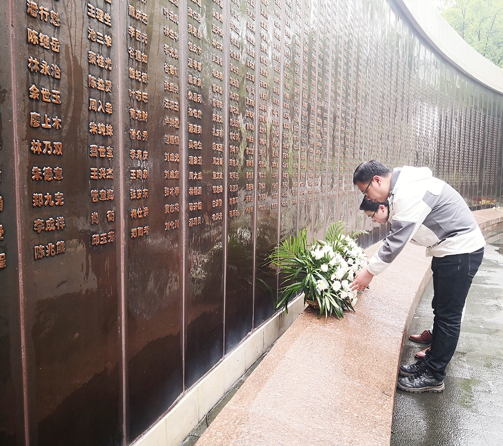 4月1日下午,一场“线上线下祭英烈”活动如期开展。在巍峨耸立的革命烈士纪念碑前、在温州烈士英烈墙前,党员代表敬献花圈、挽联、鲜花,行默哀礼,以表达对先烈士们的无限缅怀。其余党员通过在网上给革命先烈献花、鞠躬、留言寄语等方式表达对先烈的哀思和崇高敬礼。