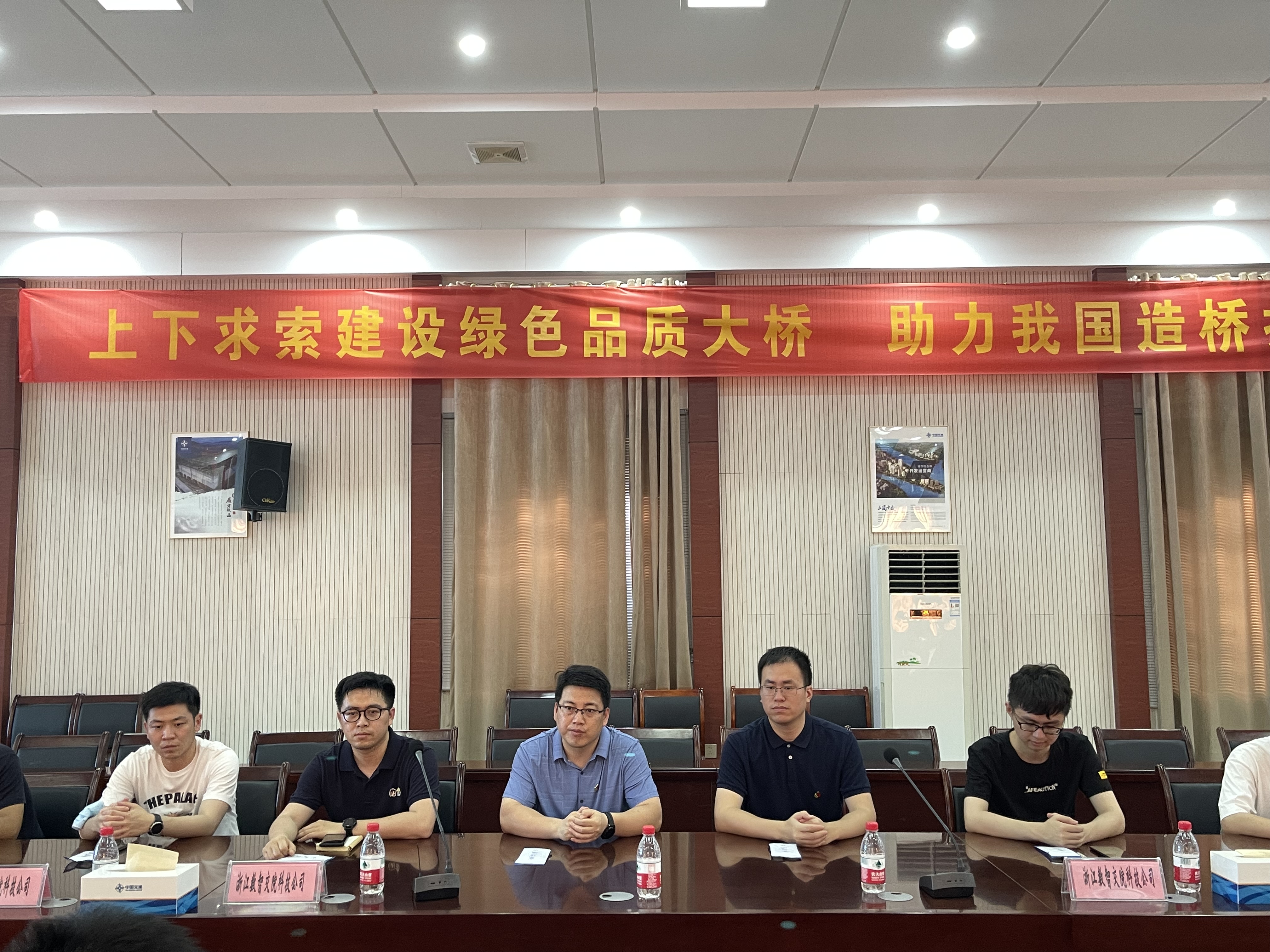 一行人首先来到北口大桥项目现场进行调研,讨论了有关方面的技术问题。随后,一行人参观了项目桥梁展示馆,观看项目宣传片,观看与讨论了项目模型和构建模型。最后,双方开展了党建交流活动,一起探讨党史教育学习心得和党建工作心得体会,坚定共同努力建成北口大桥的理想信念。同时,作为北口大桥的设计单位之一,浙江数智交院公司为下阶段桥梁加劲梁吊装提供了施工建议。