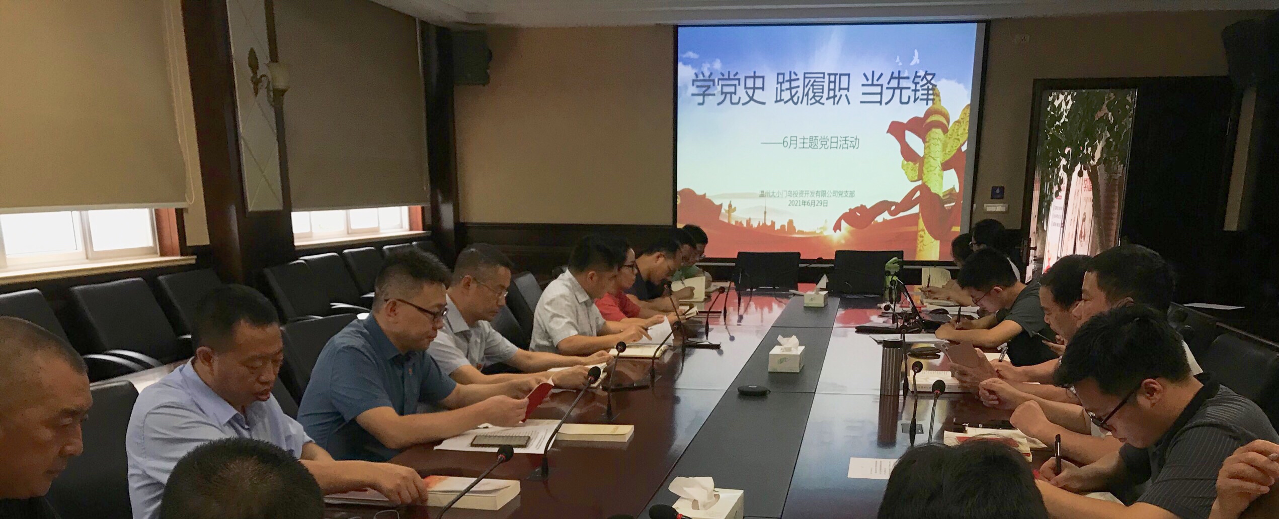 为推进党史学习教育,弘扬爱国爱党精神,引导广大党员坚定理想信念,铭记时代担当,6月29日下午,大小门岛公司党支部召开“学党史践履职当先锋”主题党日活动,会议由支部书记覃毅宝主持,全体党员、预备党员参加。