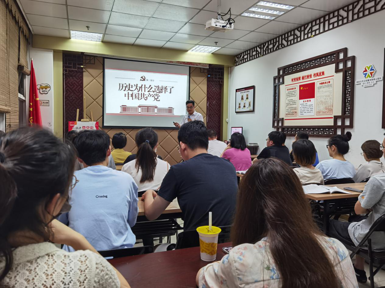7月15日,集团党史学习教育宣讲团成员胡永杰,来到五马街道八仙楼社区,给社区青年支部党员上党课。