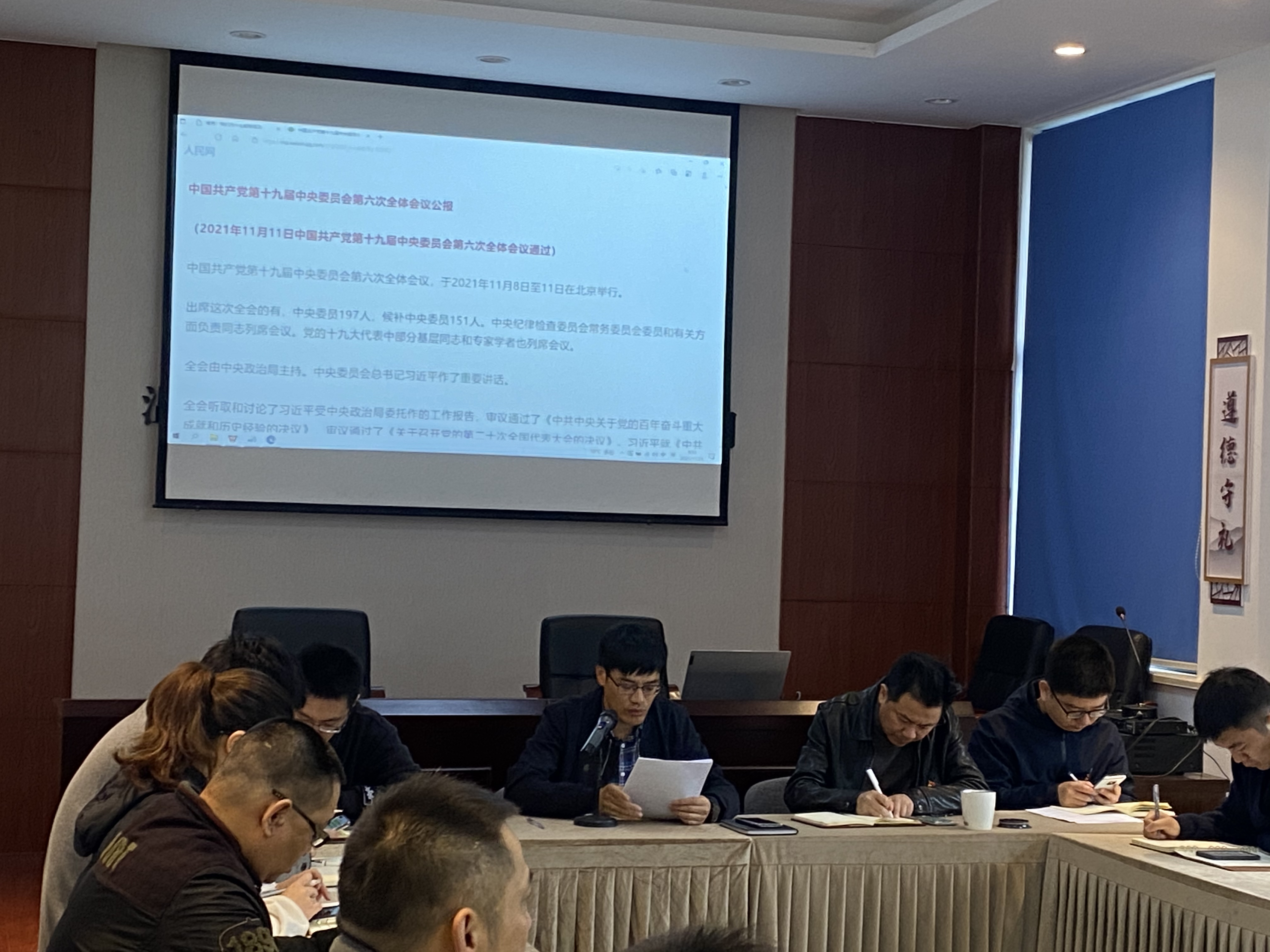 为进一步掀起学习党的十九届六中全会精神热潮,11月25日,公路工程公司党支部开展“学习贯彻十九届六中全会精神”暨专题党课主题党日活动,会议由书记胡永杰主持,全体党员参加。