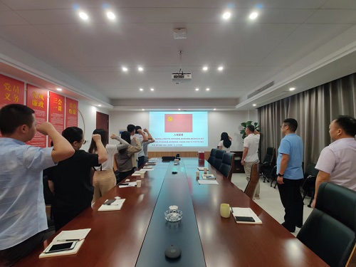 最后,轮值书记朱晓丹带领所有党员重温入党誓词,支部书记郭鹏程给这个月过政治生日的五名党员送上政治生日寄语,祝他们政治生日快乐,牢记初心使命,坚定政治方向,坚守崇高理想,革命青春永驻,并送上了政治生日贺卡和蛋糕。