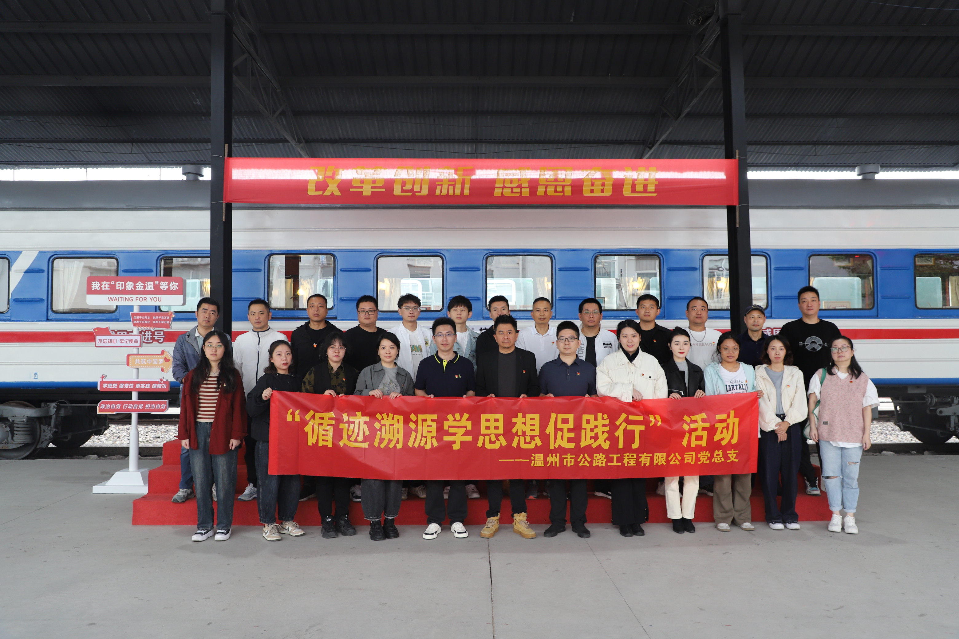 会上,支部副书记祝建武以“深入学习新思想,实干担当促发展”为题给大家上了一堂专题党课,深刻阐述了坚持学思用贯通、知信行统一的重要性,鼓励全体党员干部始终保持统一的思想、坚定的意志、协调的行动、强大的战斗力,努力在以学铸魂、以学增智、以学正风、以学促干方面取得实实在在的成效。随后,全体党员共同前往金温铁路文化基地参加“循迹溯源学思想促践行”活动,重温了金温铁路产业工人在不同历史节点的铁军风采风貌,深入学习了金温铁路历史文化,感悟“八八战略”实施20周年带给温州城市建设发展的精彩蝶变。